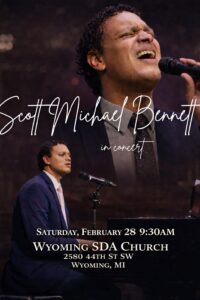 Scott Michael Bennett, vocalist heard on Strong Tower Radio, concert and family testimony will be this Saturday at 9:30 am at the Wyoming Seventh-day Adventist Church, 2580 44th St. SW.