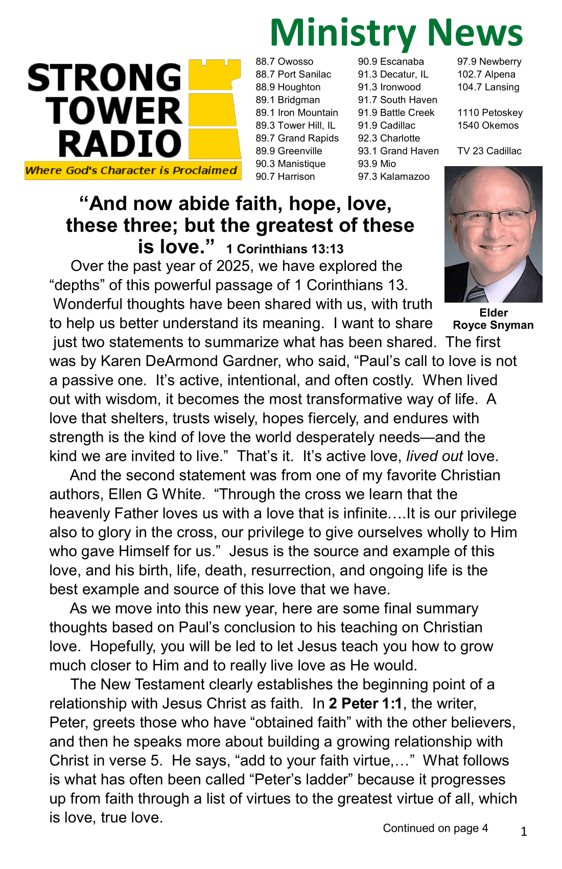 January Newsletter Stay Up-to-Date on the Latest News from Strong Tower Radio, Where God’s Character is Proclaimed! View/download the full Newsletter by clicking below. JANUARY NEWSLETTER VIEW NEWSLETTER ARCHIVE Subscribe to Our Newsletter! Please enable JavaScript in your browser to complete this form.Name *FirstLastEmail *Phone Number *Strong Tower Radio will not share, sell, or rent your information to any outside entities. Mailing AddressAddress Line 1Address Line 2CityState / Province / RegionPostal Code--- Select country ---AfghanistanAlbaniaAlgeriaAmerican SamoaAndorraAngolaAnguillaAntarcticaAntigua and BarbudaArgentinaArmeniaArubaAustraliaAustriaAzerbaijanBahamasBahrainBangladeshBarbadosBelarusBelgiumBelizeBeninBermudaBhutanBolivia (Plurinational State of)Bonaire, Saint Eustatius and SabaBosnia and HerzegovinaBotswanaBouvet IslandBrazilBritish Indian Ocean TerritoryBrunei DarussalamBulgariaBurkina FasoBurundiCabo VerdeCambodiaCameroonCanadaCayman IslandsCentral African RepublicChadChileChinaChristmas IslandCocos (Keeling) IslandsColombiaComorosCongoCongo (Democratic Republic of the)Cook IslandsCosta RicaCroatiaCubaCuraçaoCyprusCzech RepublicCôte d'IvoireDenmarkDjiboutiDominicaDominican RepublicEcuadorEgyptEl SalvadorEquatorial GuineaEritreaEstoniaEswatini (Kingdom of)EthiopiaFalkland Islands (Malvinas)Faroe IslandsFijiFinlandFranceFrench GuianaFrench PolynesiaFrench Southern TerritoriesGabonGambiaGeorgiaGermanyGhanaGibraltarGreeceGreenlandGrenadaGuadeloupeGuamGuatemalaGuernseyGuineaGuinea-BissauGuyanaHaitiHeard Island and McDonald IslandsHondurasHong KongHungaryIcelandIndiaIndonesiaIran (Islamic Republic of)IraqIreland (Republic of)Isle of ManIsraelItalyJamaicaJapanJerseyJordanKazakhstanKenyaKiribatiKorea (Democratic People's Republic of)Korea (Republic of)KosovoKuwaitKyrgyzstanLao People's Democratic RepublicLatviaLebanonLesothoLiberiaLibyaLiechtensteinLithuaniaLuxembourgMacaoMadagascarMalawiMalaysiaMaldivesMaliMaltaMarshall IslandsMartiniqueMauritaniaMauritiusMayotteMexicoMicronesia (Federated States of)Moldova (Republic of)MonacoMongoliaMontenegroMontserratMoroccoMozambiqueMyanmarNamibiaNauruNepalNetherlandsNew CaledoniaNew ZealandNicaraguaNigerNigeriaNiueNorfolk IslandNorth Macedonia (Republic of)Northern Mariana IslandsNorwayOmanPakistanPalauPalestine (State of)PanamaPapua New GuineaParaguayPeruPhilippinesPitcairnPolandPortugalPuerto RicoQatarRomaniaRussian FederationRwandaRéunionSaint BarthélemySaint Helena, Ascension and Tristan da CunhaSaint Kitts and NevisSaint LuciaSaint Martin (French part)Saint Pierre and MiquelonSaint Vincent and the GrenadinesSamoaSan MarinoSao Tome and PrincipeSaudi ArabiaSenegalSerbiaSeychellesSierra LeoneSingaporeSint Maarten (Dutch part)SlovakiaSloveniaSolomon IslandsSomaliaSouth AfricaSouth Georgia and the South Sandwich IslandsSouth SudanSpainSri LankaSudanSurinameSvalbard and Jan MayenSwedenSwitzerlandSyrian Arab RepublicTaiwan, Republic of ChinaTajikistanTanzania (United Republic of)ThailandTimor-LesteTogoTokelauTongaTrinidad and TobagoTunisiaTurkmenistanTurks and Caicos IslandsTuvaluTürkiyeUgandaUkraineUnited Arab EmiratesUnited Kingdom of Great Britain and Northern IrelandUnited States Minor Outlying IslandsUnited States of AmericaUruguayUzbekistanVanuatuVatican City StateVenezuela (Bolivarian Republic of)VietnamVirgin Islands (British)Virgin Islands (U.S.)Wallis and FutunaWestern SaharaYemenZambiaZimbabweÅland IslandsCountryHow did you find us? *Please let us know which local station you listen from, if you listen through streaming, or if you simply found us online. WebsiteSubmit