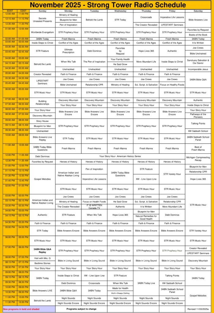 NOVEMBER 2025 PROGRAM SCHEDULE New Programming is in Red. Need to save the schedule for later or view a larger image? Simply click the button below and save or view the PDF file. View & Download PDF Stay Up-to-Date with our Community Calendar STR Calendar